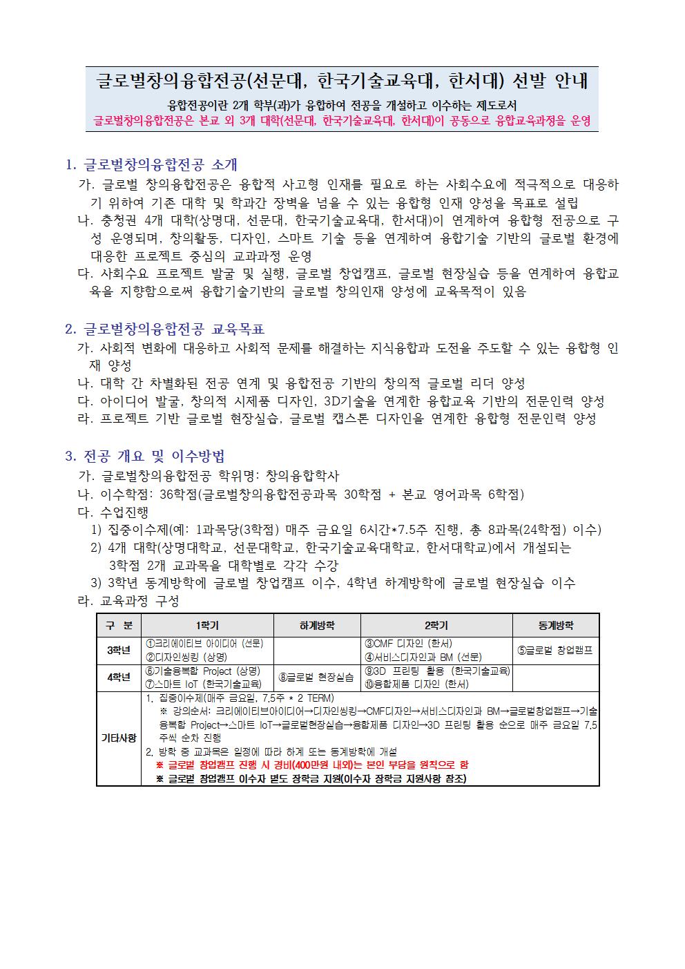 - 글로벌 창의 융합전공(선문대, 한국기술교육대,한서대)선발안내